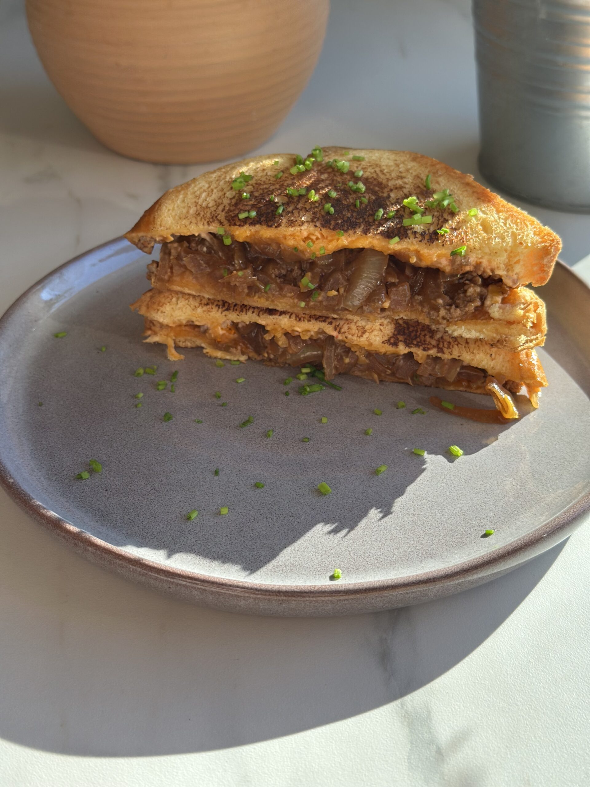 Det, der gør cowboy toast til noget særligt, er balancen mellem det syrlige fra de bløde løg, det krydrede og lidt røgede fra kødsaucen og den cremede smeltede ost. Kombinationen af chili-mayo, cheddar og det ristede toastbrød gør, at hver bid har både saft, sprødhed og smag. Kødsaucen får sin fylde fra tomat, Worcestershire sauce og krydderier, og løgene tilføjer en mild sødme, som klæder det hele. Toasten kan laves i en almindelig pande, paninigrill eller toastjern – alt efter hvad du har – og den smager allerbedst, når den serveres med det samme. Cowboy toast er også en god måde at bruge rester på, og du kan nemt tilpasse den med grøntsager eller andre typer ost, hvis du har lyst til lidt variation.