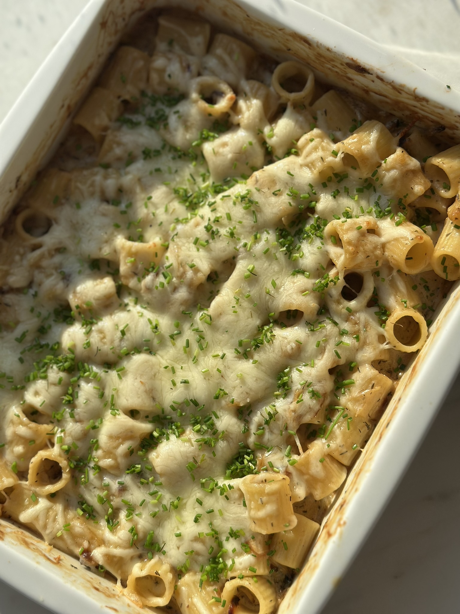 French onion pasta bake