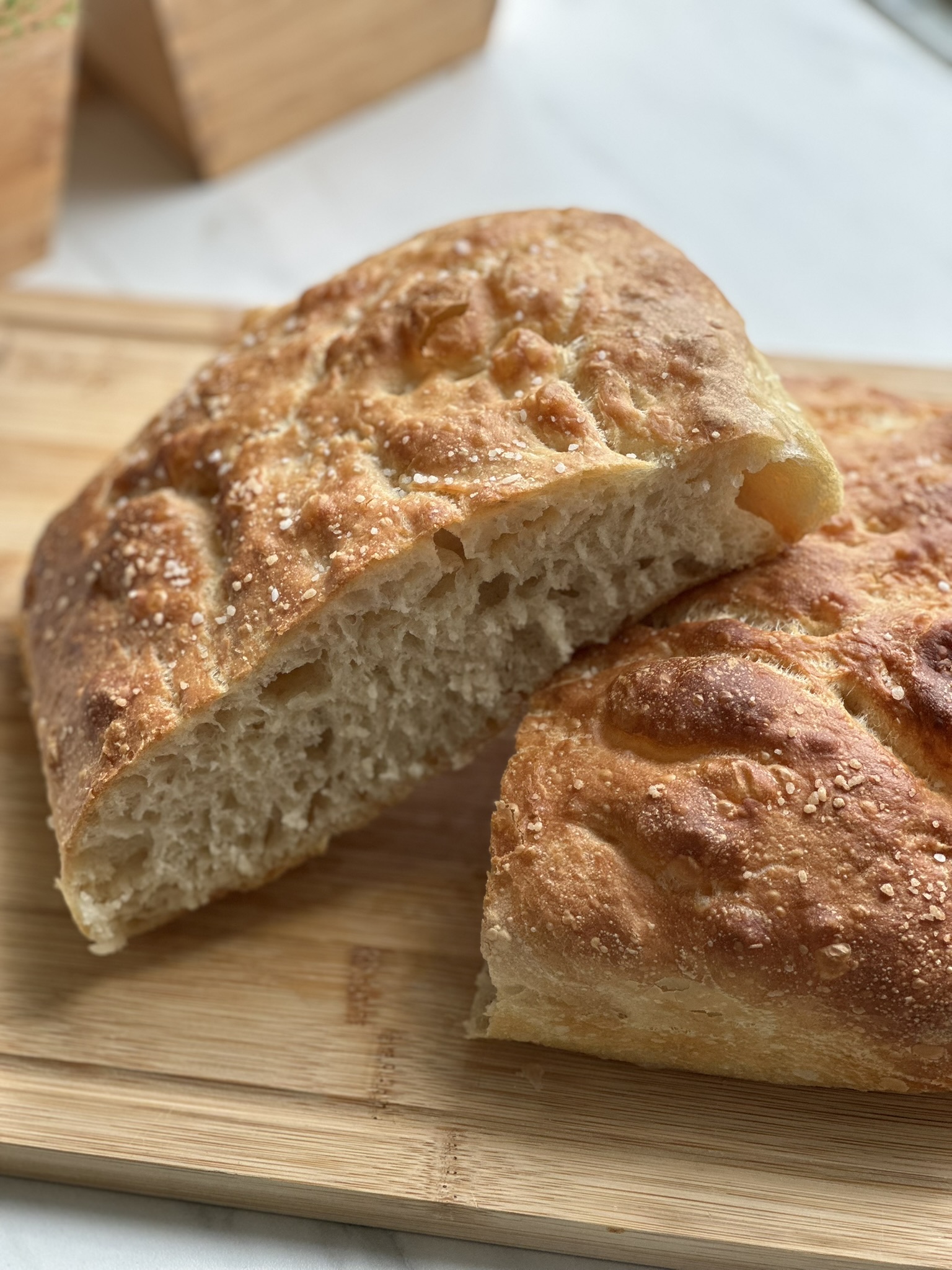 Dejen til focaccia er relativt våd sammenlignet med mange andre brøddeje, og det er med til at give den karakteristiske luftige struktur. I stedet for klassisk æltning arbejder man med foldninger af dejen undervejs. Det hjælper med at udvikle gluten i dejen, så brødet får struktur uden at blive tungt. Når dejen til sidst hæver i en olieret form, bliver den blød og elastisk, og når man trykker små fordybninger i overfladen før bagning, skabes de klassiske focaccia-huller. Her samler olivenolien sig, og sammen med lidt groft salt giver det den smag, man typisk forbinder med et klassisk focacciabrød.