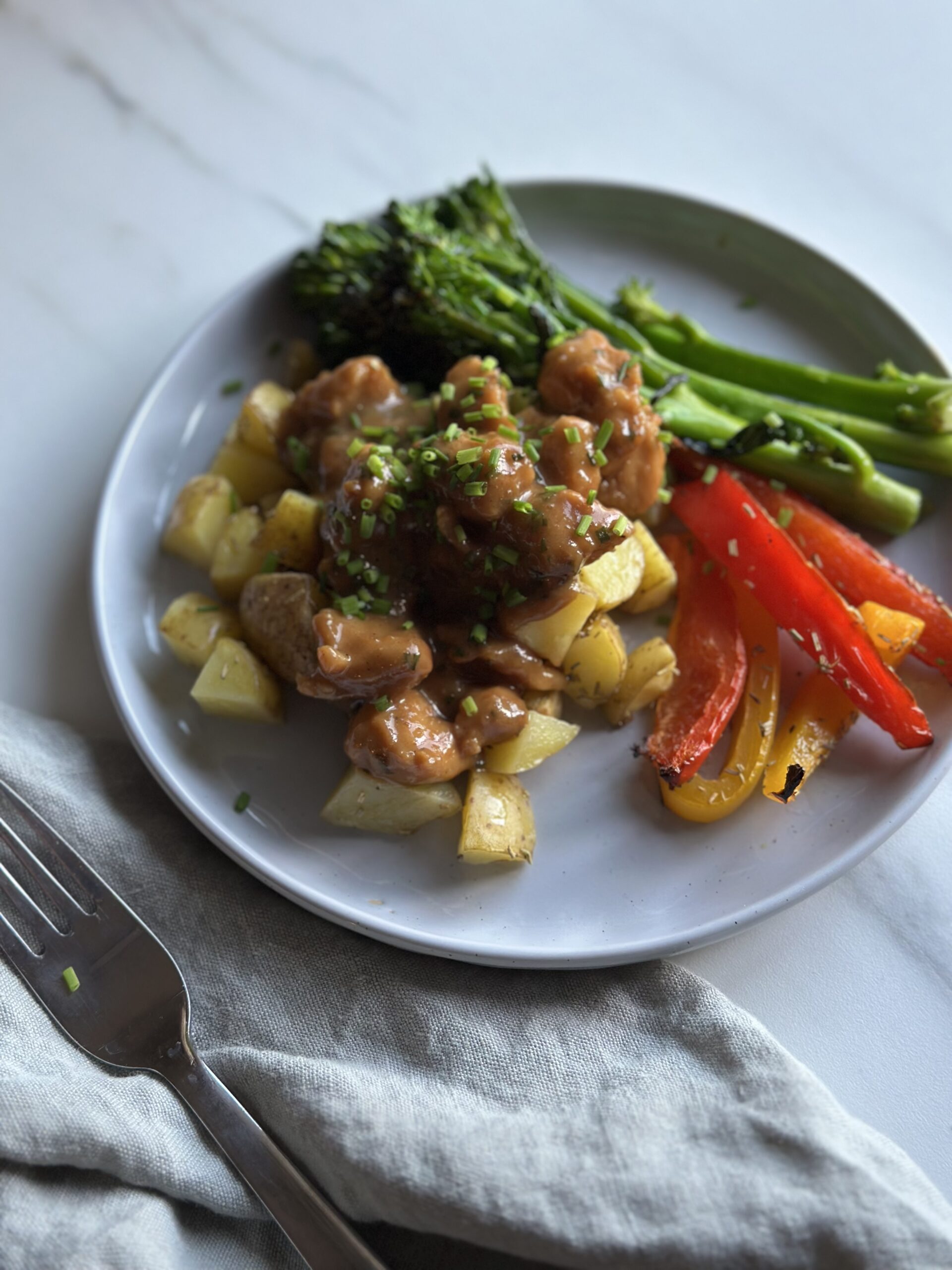 Det, der gør retten særlig, er balancen mellem sødme og skarphed i saucen. Honning og sennep giver smagen karakter, og sammen med creme fraiche og lidt soya får man en fyldig og afrundet sauce. Kartoflerne og grøntsagerne får en mild og rosmarinduftende smag fra ovnen, som passer perfekt til den cremede kylling. Alt i alt får du en ret, der både er nem at lave og fuld af smag – og som ser ud af meget, selvom den er lavet på enkle ingredienser.