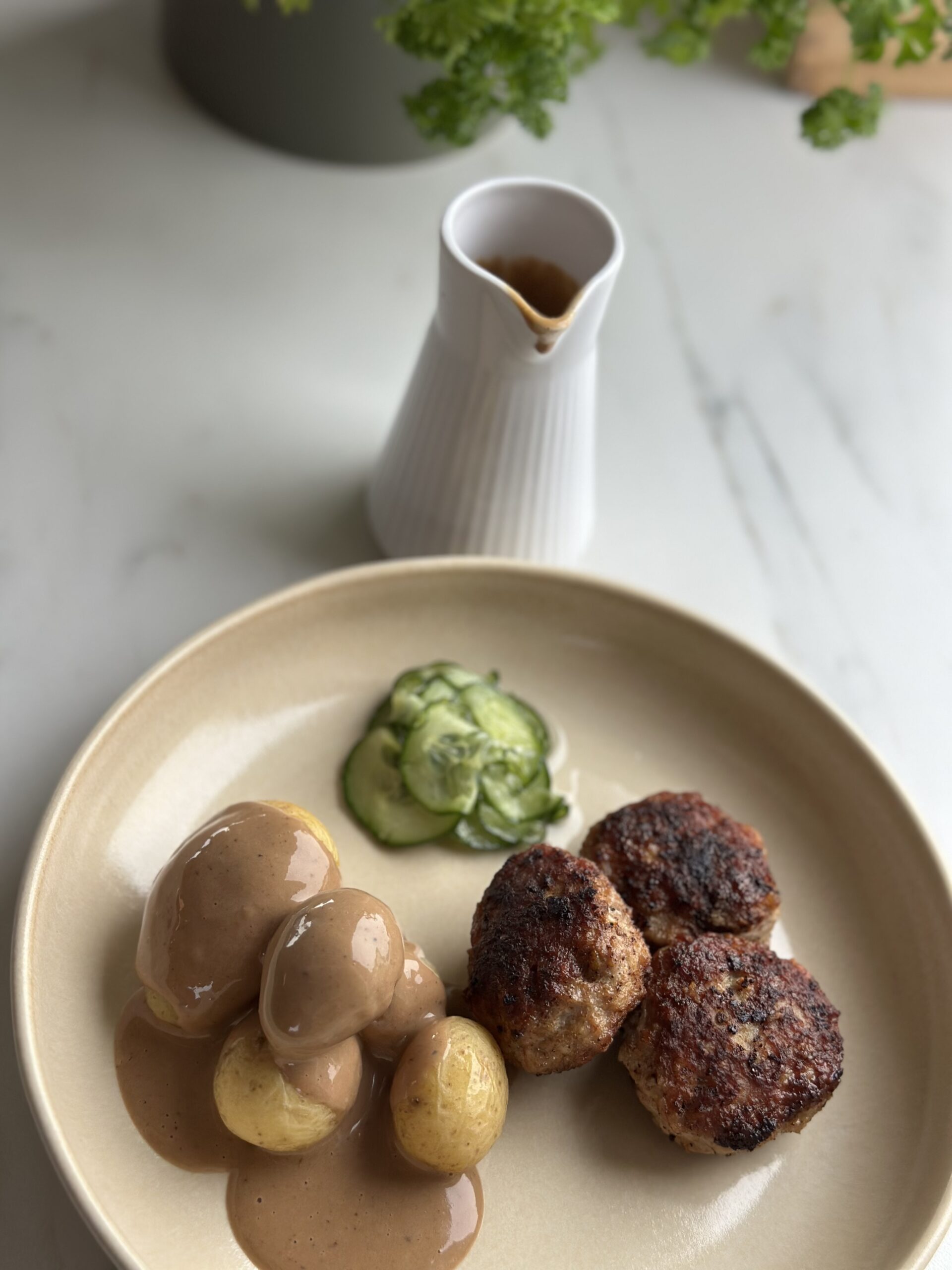 • Server med klassisk brun sovs, rødkål og kartofler – eller lav frikadellesandwich
