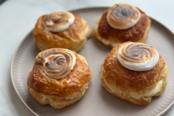 Når ovnen er helt varm, skru ned til 225 grader, og bag bollerne i ca. 15 minutter, til de er gyldne og har en sprød overflade.