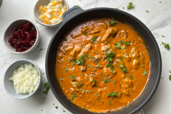 Pasta i cremet gulerodssauce er oplagt til kødfrie dage og kan laves på under 45 minutter. Den kan justeres med forskellige krydderurter, lidt parmesan eller en håndfuld spinat, hvis du vil have ekstra grønt. Du kan også lave saucen i forvejen og bare koge pasta, når det passer. En god basisret, som hurtigt bliver en favorit i madplanen.