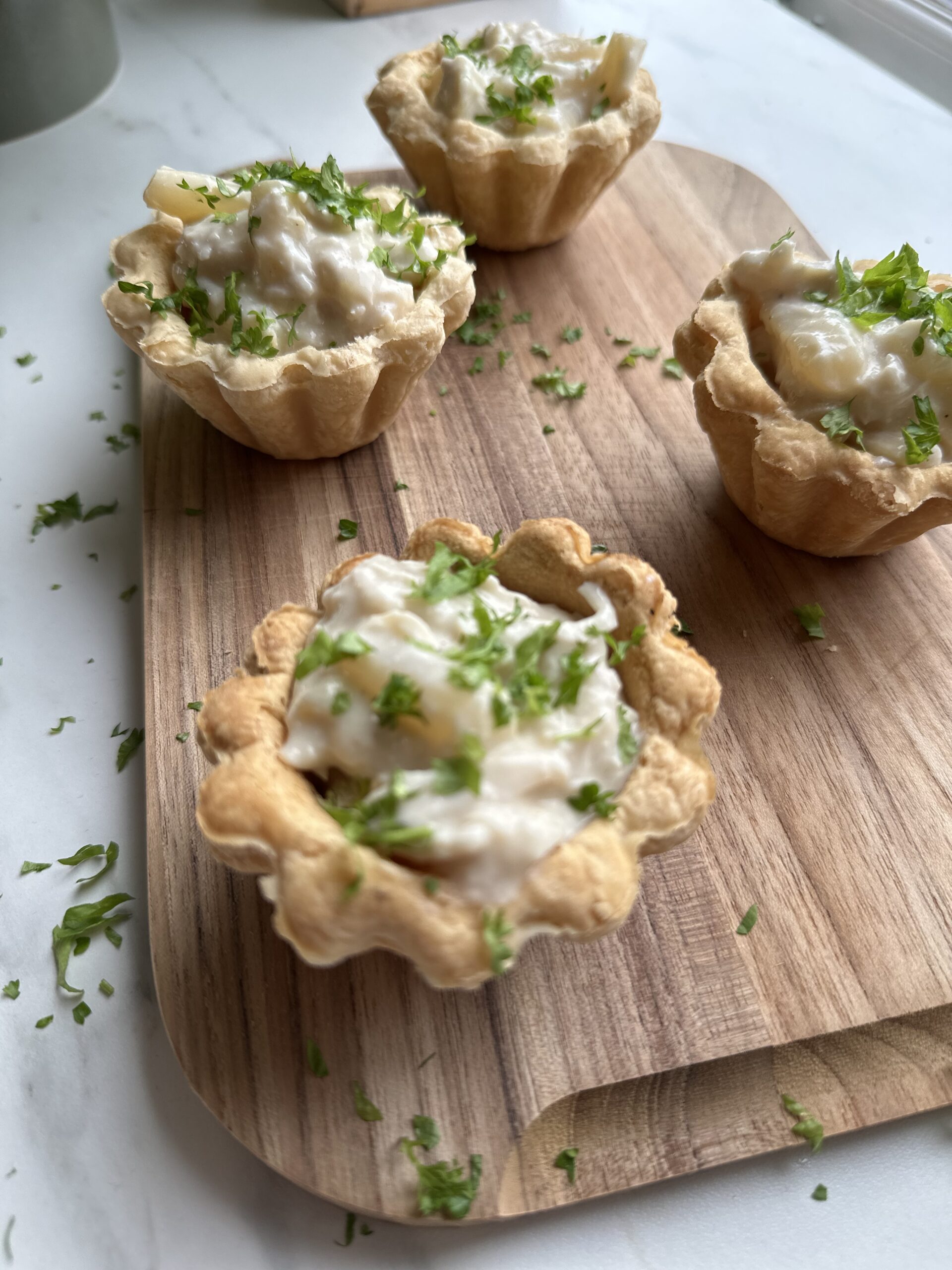 Retten er også oplagt som restemad, når du har tilberedt en hel kylling eller suppehøne. Fyldet kan sagtens laves dagen før og lunes lige inden servering, hvilket gør tarteletterne til en nem løsning på travle dage, hvor der stadig skal god og hjemmelavet mad på bordet